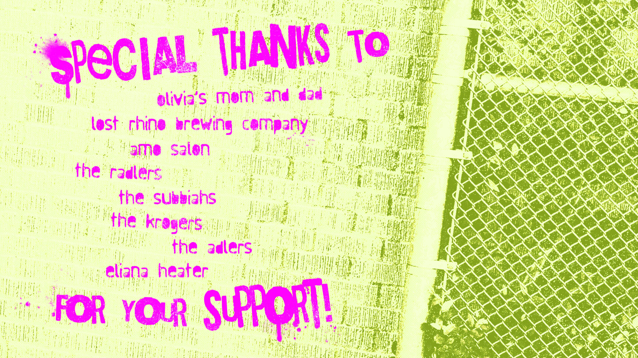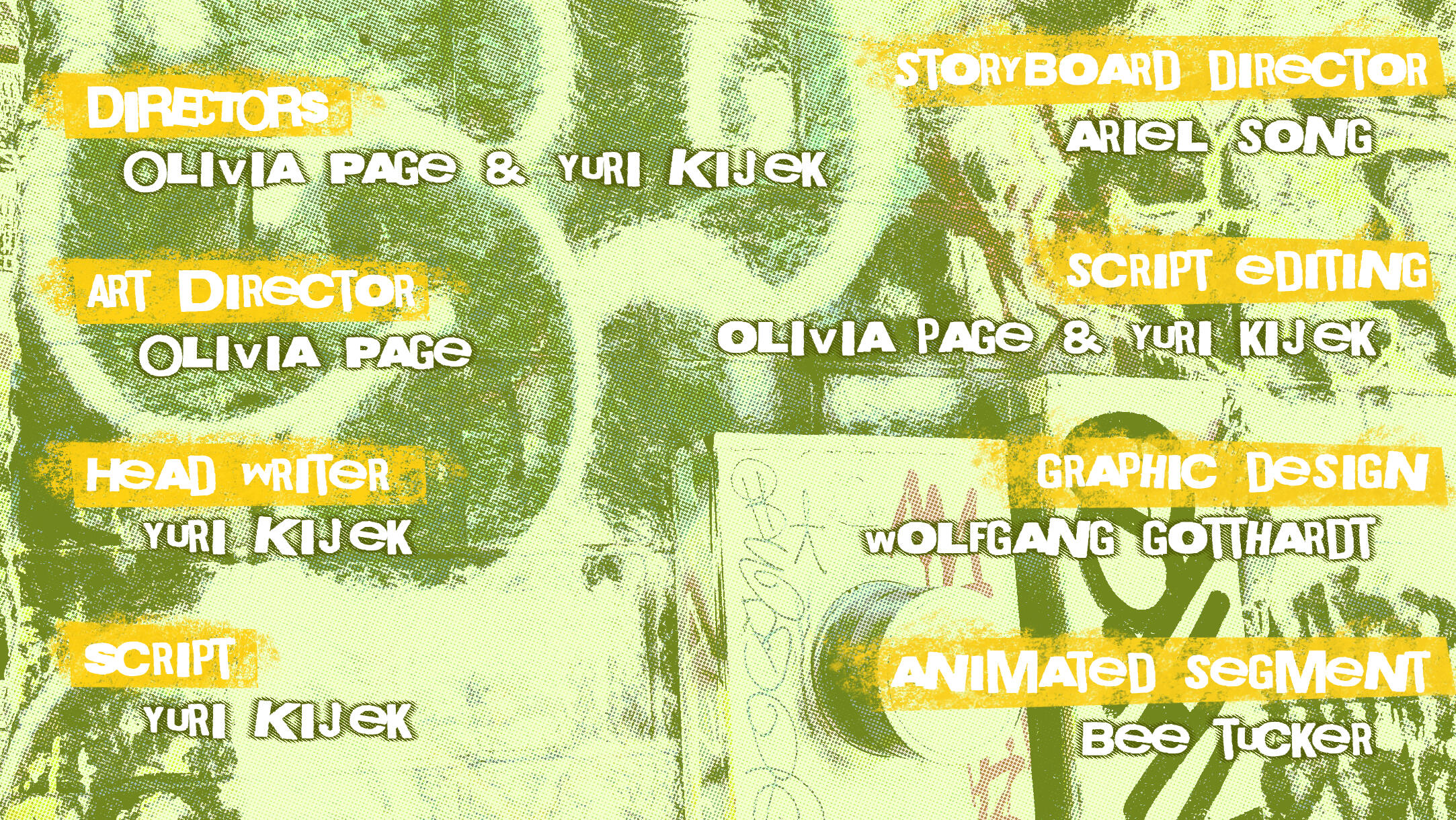 I designed the logo and credits sequence for the first short, Macey Wins A Ticket, as well as some marketing material.This short takes place at the Junktrack and focuses on Macey Mittens, a chaotic little creature.The logo was created to reflect Macey's silly, childish nature, and ties into the mixed-media style of other promotional material.The grungey, graffiti-inspired style of the credits were based on the setting of the Junktrack and used photos taken by Yuri Kijek as backgrounds.
